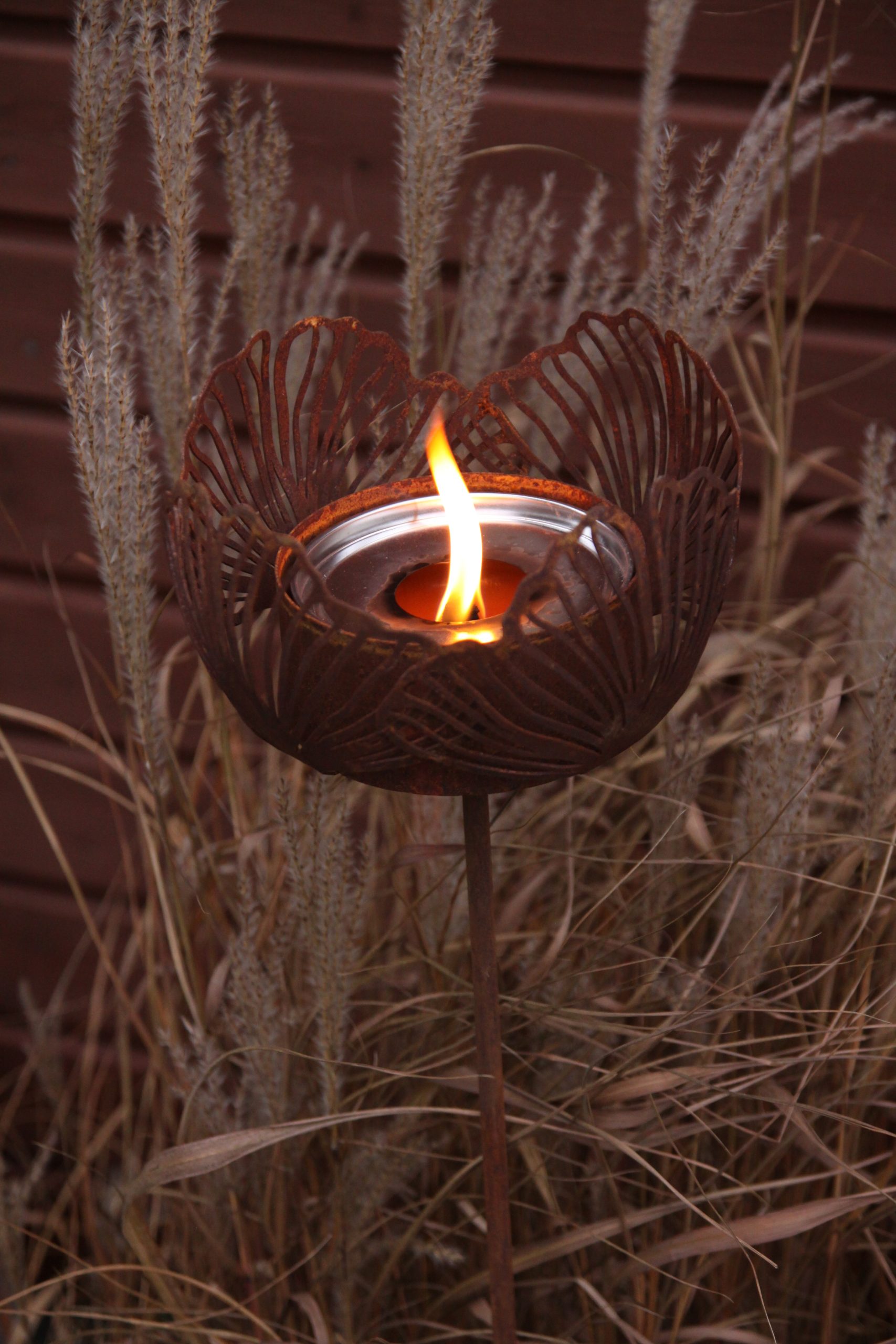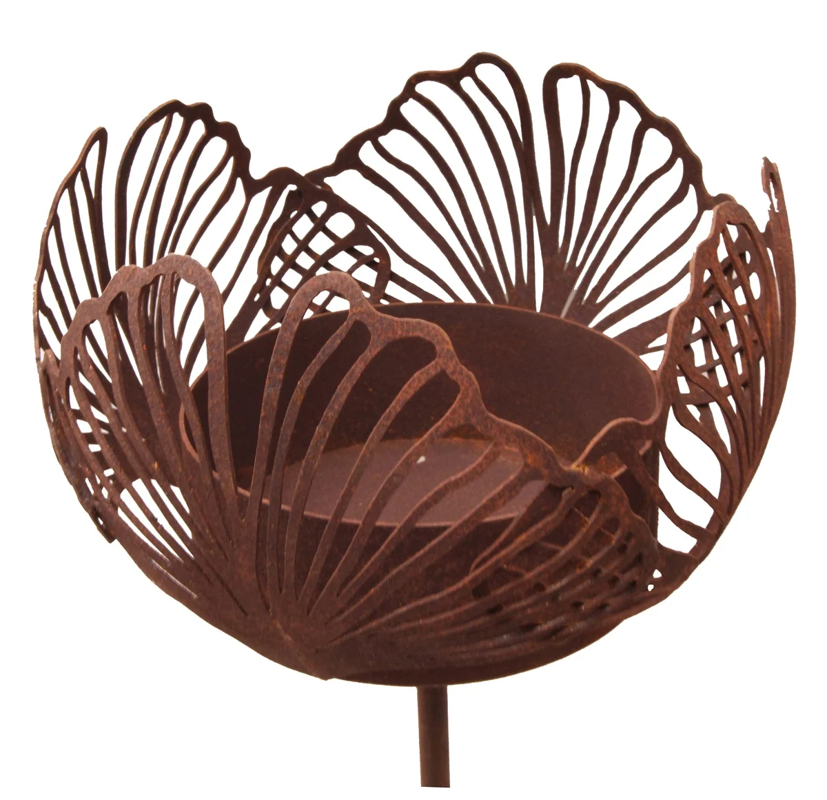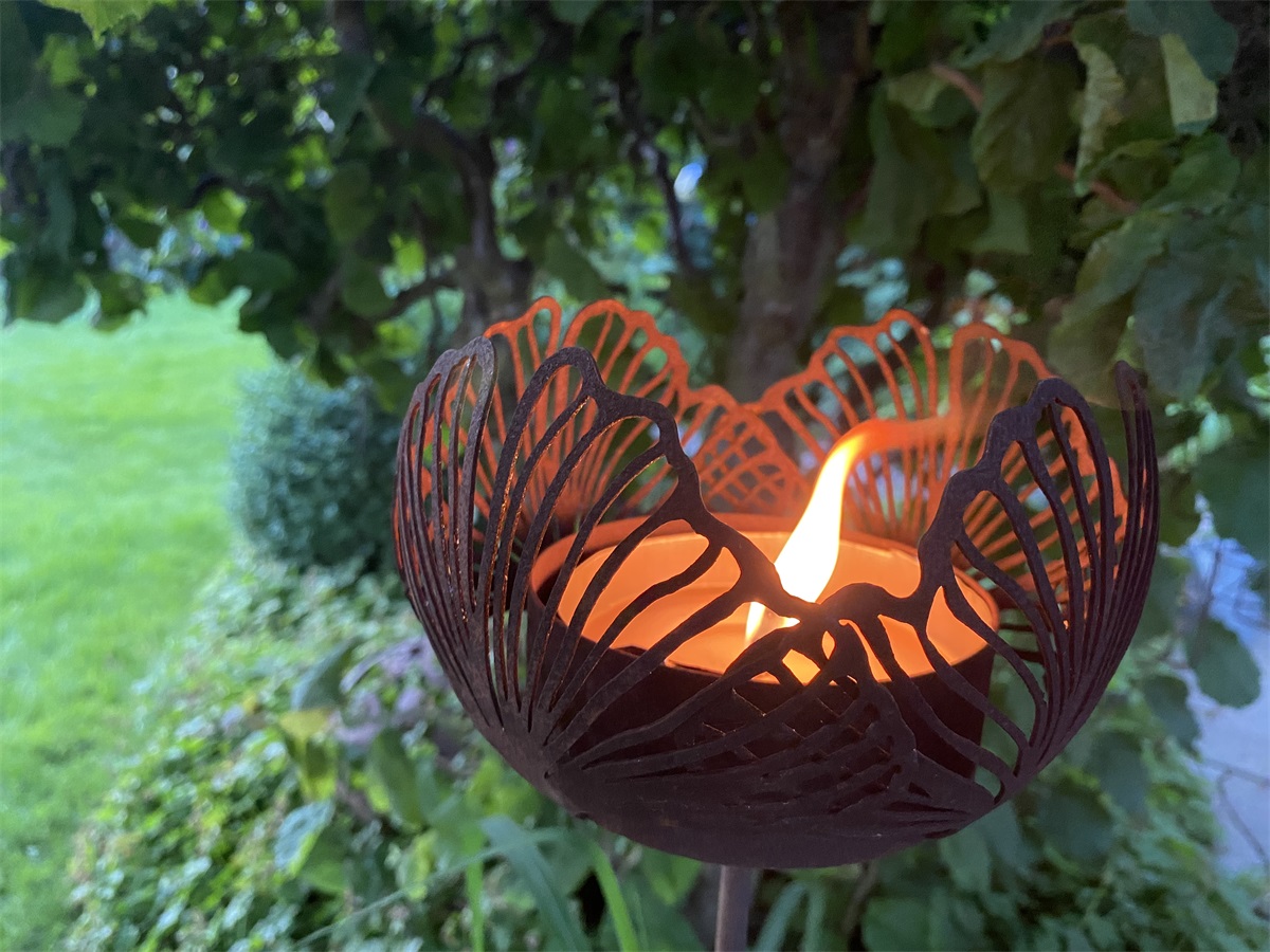 Fakkelholder med ginkgo biloba blade i jern, rust.